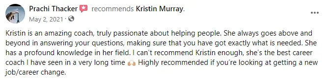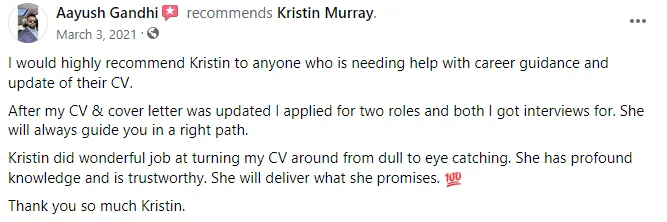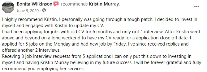 My name is Kristin Murray and I am an Leader who has over 25 years of recruitment experience. I've led large operational teams in the Corporate world and have recruited for junior staff through to senior leaders. I'm a Career & Leadership Coach. I help individuals strengthen their CVs, build compelling cover letters, and get hired Even if they have minimal Experience. With my expertise and experience, I can provide insights on every step of the hiring process - from CV to interviews- because I understand it from an employers, hiring manager and Candidates perspective.