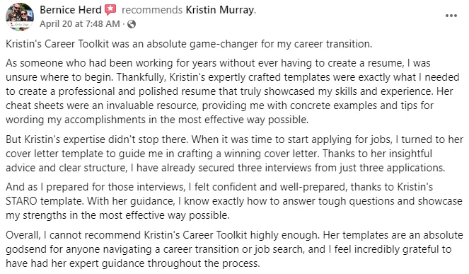 Kristin's templates, tools and resources helps you build your CV